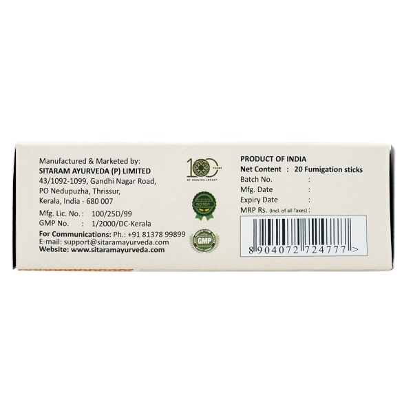 These qualities render it a highly effective aid in checking the spread of communicable diseases. Sitaram brings you the best of both worlds in this compact easy to use fumigation sticks, a modern take on the traditional powder form. The stick modification saves you the trouble of the traditional practice of fumigation using live embers.