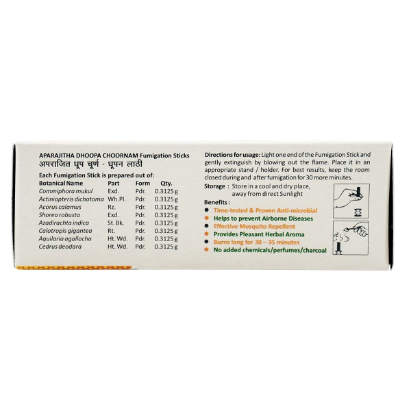 Features and benefits of Aparajitha Dhoopa Choornam Fumigation Sticks –