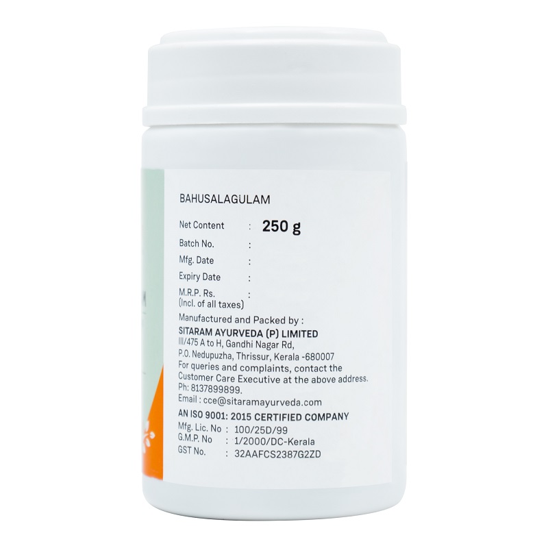Bahushala Gulam is a safe and effective remedy for internal and external piles, rectal inflammation and fissures. Bahusala gulam is considered as one of the best formulations for all types of Piles It further helps in improving digestion and easy evacuation of the bowels, and improves liver function.
