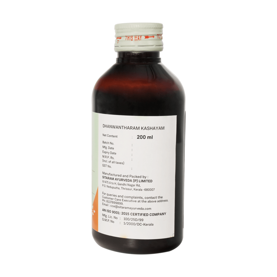 Dhanwantharam Kashayam is an essential part of the post-natal regimen in Ayurveda. Religiously followed, Dhanwantharam Kashayam helps in restoring strength and function to muscles, bones, and joints post child delivery.