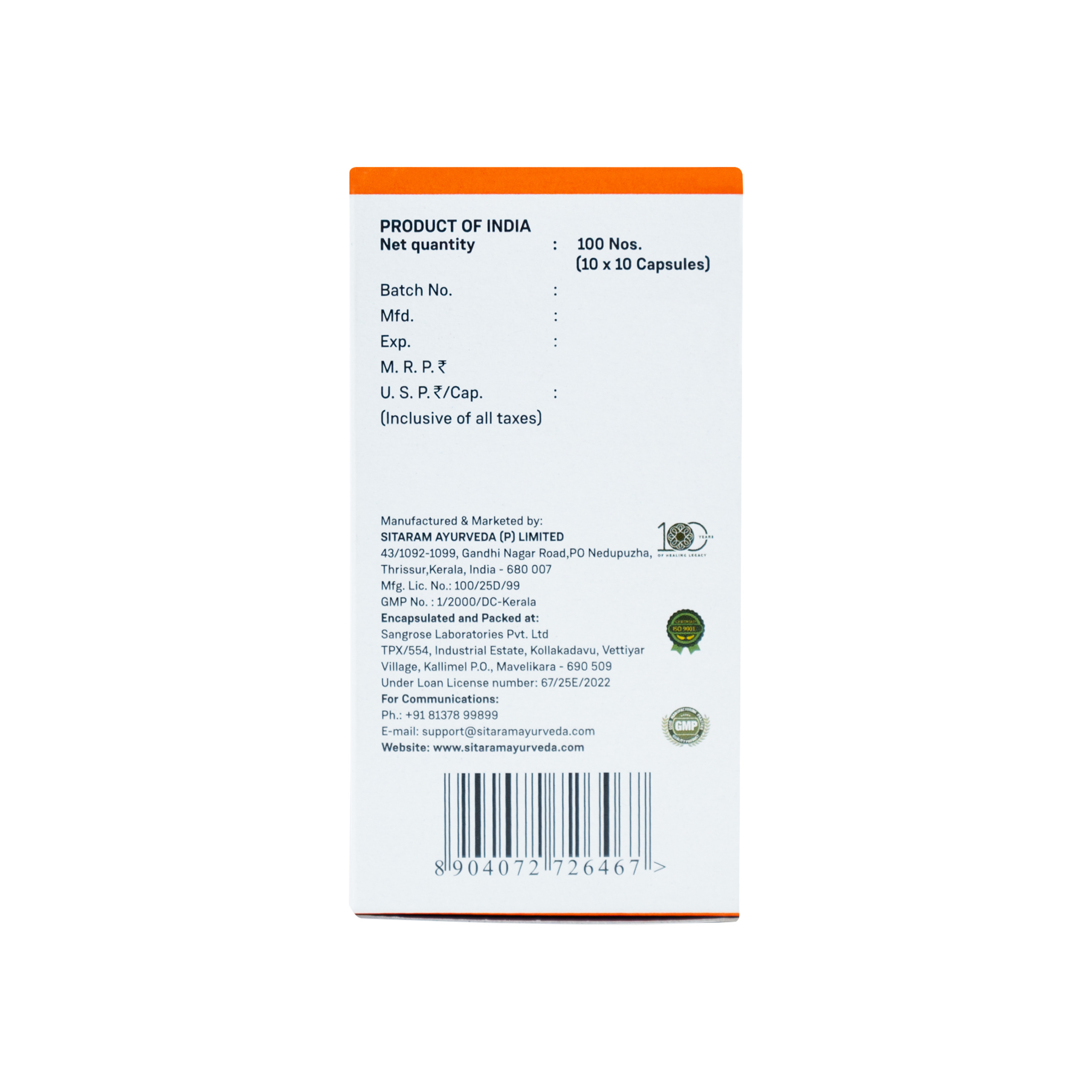 Sitaram Ayurveda (P) Ltd, 43/1092-1099, Gandhi Nagar Road, P.O Nedupuzha, Thrissur, Kerala-680007.