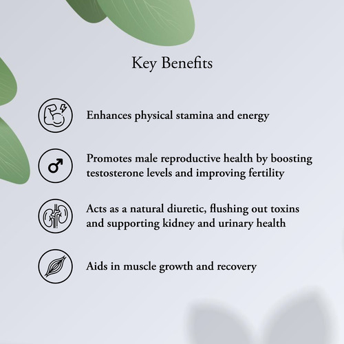 Gokshura is seen to have a specific action on the organs located in the pelvic cavity. It improves the functioning of the kidneys, the reproductive organs, and the male and female genitalia. Gokshura capsules are an excellent diuretic and relieves inflammation throughout the body.