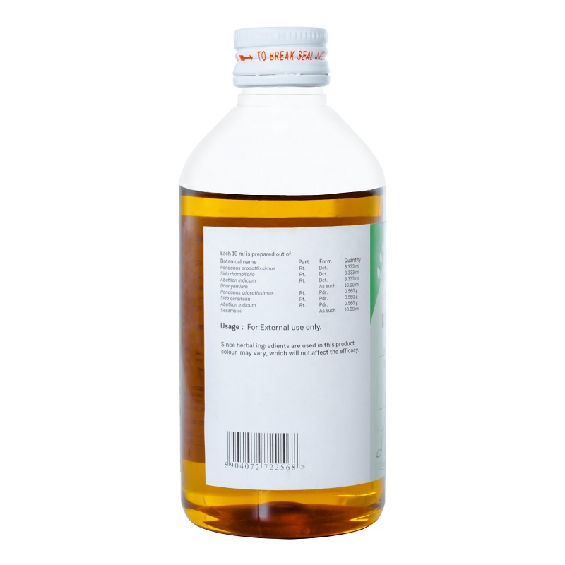 For best results, you can use quantity sufficient Kethakeemooladi Thailam in a bowl, and place the bowl in warm water to make it slightly warm. Once the oil is mildly heated, apply the oil thoroughly on your whole body or in the area of pain.