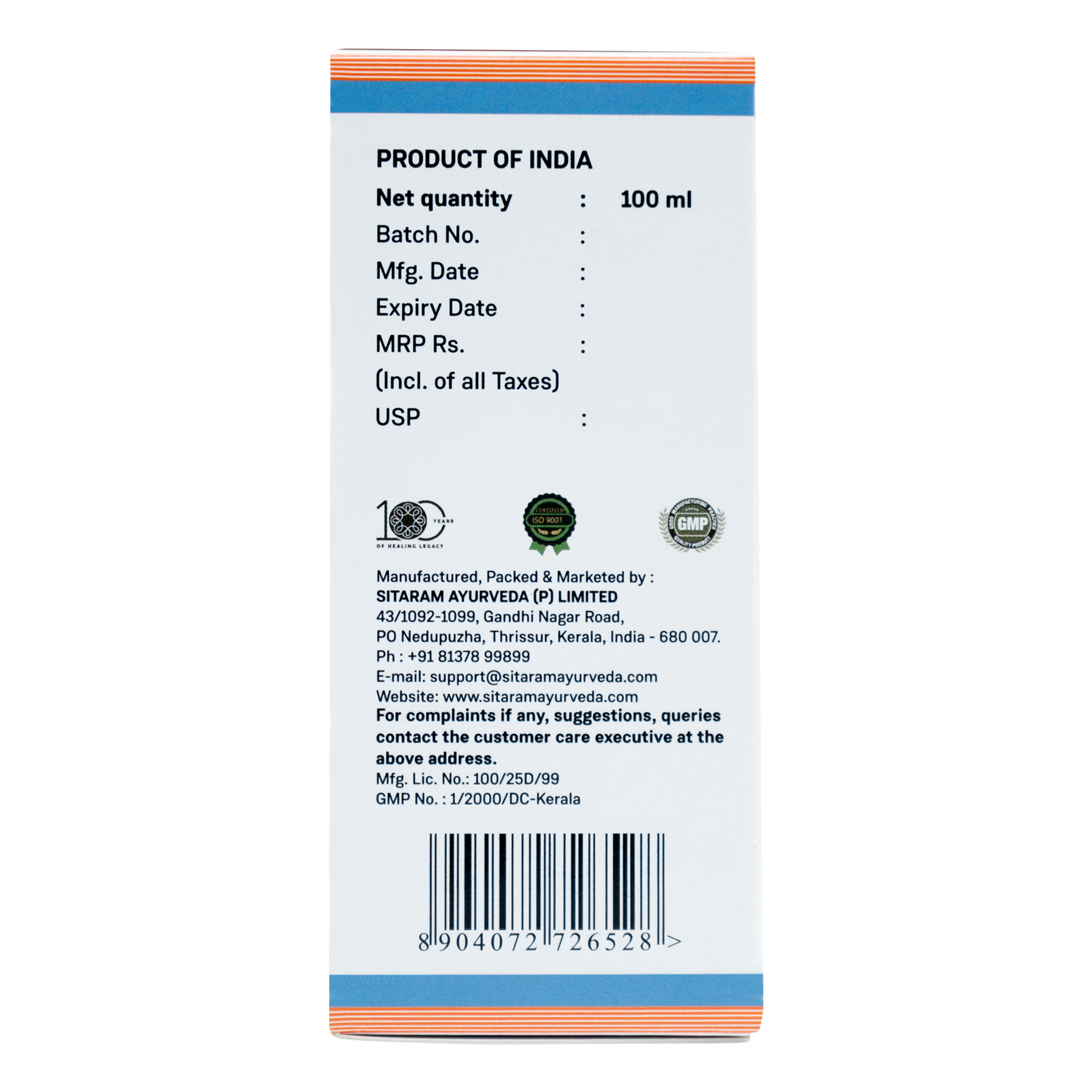 Sitaram Ayurveda (P) Ltd, 43/1092-1099, Gandhi Nagar Road, P.O Nedupuzha, Thrissur, Kerala-680007.
