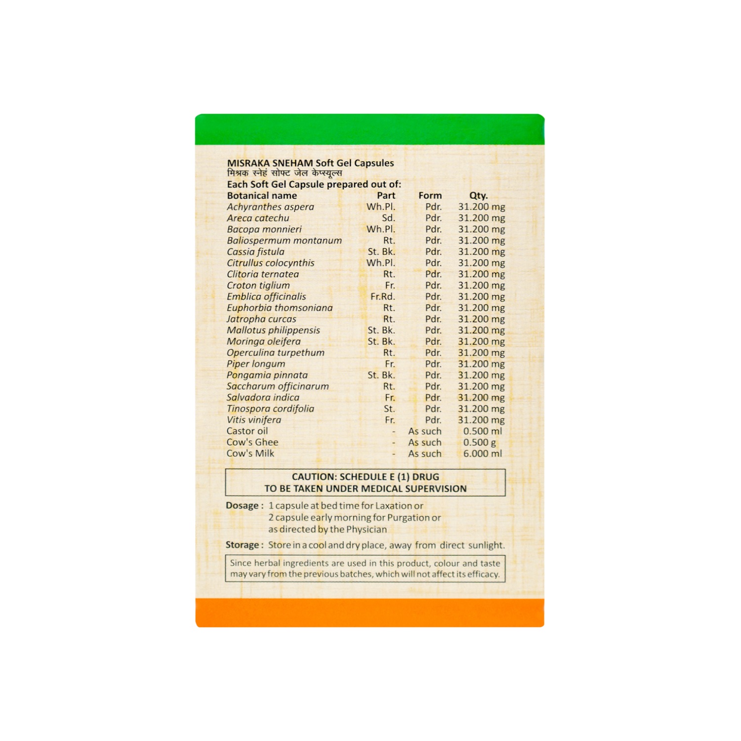 - Regular use of Misrakasneham capsule makes the fecal matter moist and supple, facilitating easy voiding.