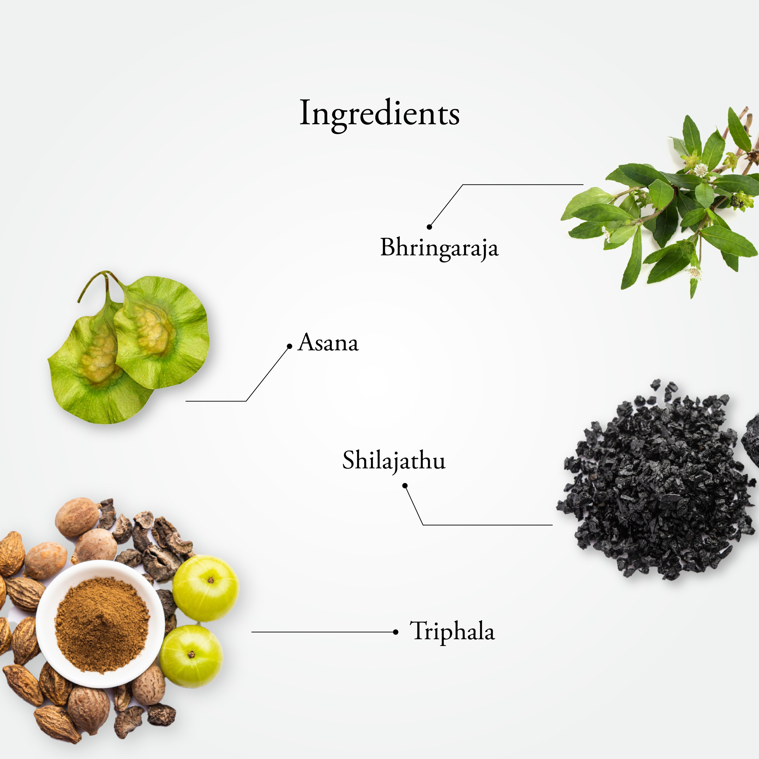 - Triphala: Strengthens hair follicles and revitalizes the body for overall wellness.