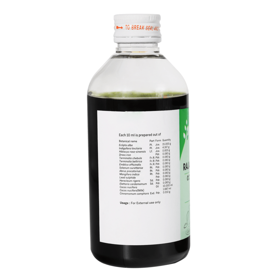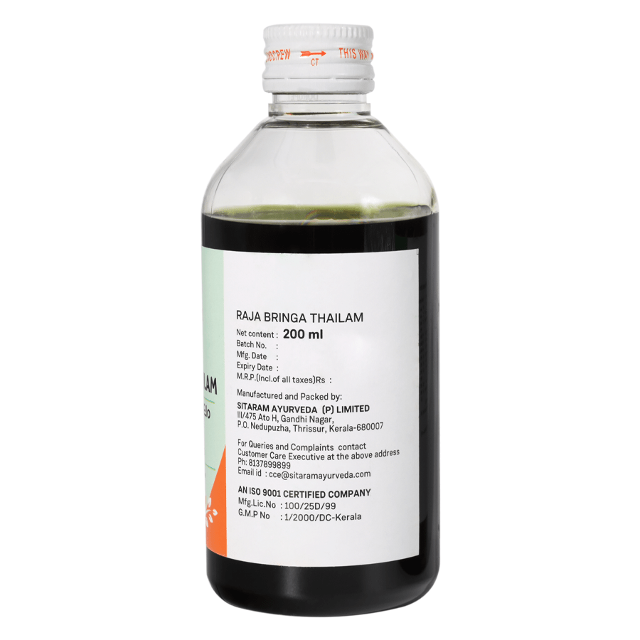 - The ingredients of Rajabhringa Thailam activate and rejuvenate cells in your scalp and follicles ensuring that a major proportion of hair stays in anagen (growing) phase and attains full length and natural black colour.