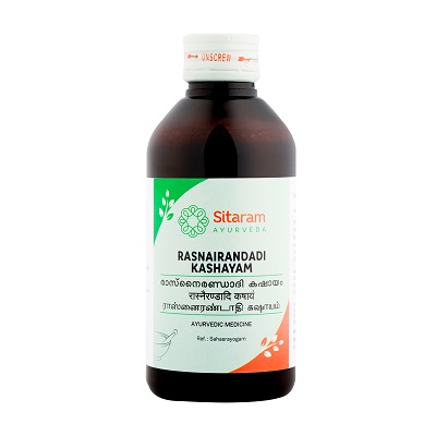 Rasnadi Kashayam is used for the management of inflammatory pain and swelling in rheumatoid arthritis, osteoarthritis, cervical and lumbar spondylitis, bursitis, diffuse joint pain etc.