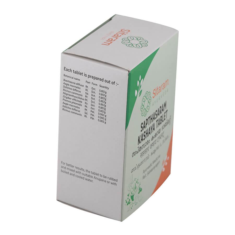 - Saptasaram Kashayam is a traditional and time-tested combination of Punarnava, Vilwa, Kulatha, Erandamoola, Sahachara, Nagara and Agnimantha.