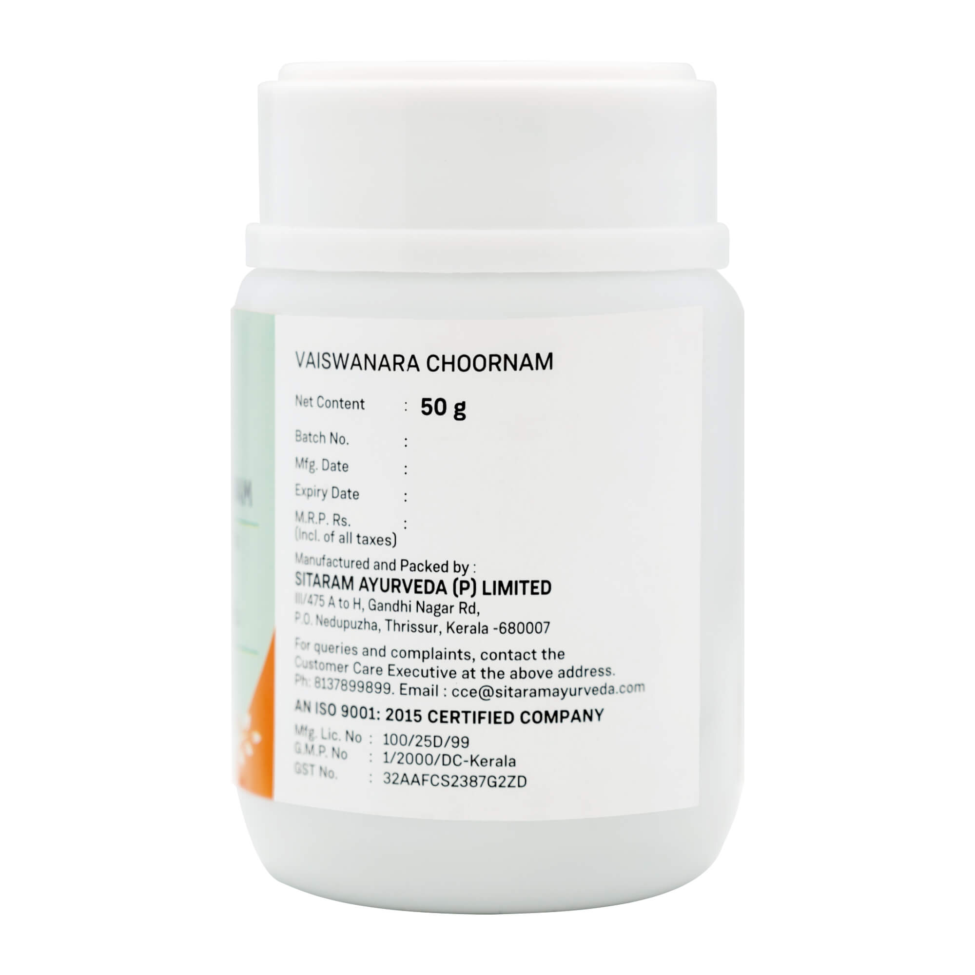 Sitaram Ayurveda (P) Ltd, 43/1092-1099, Gandhi Nagar Road, P.O Nedupuzha, Thrissur, Kerala-680007.